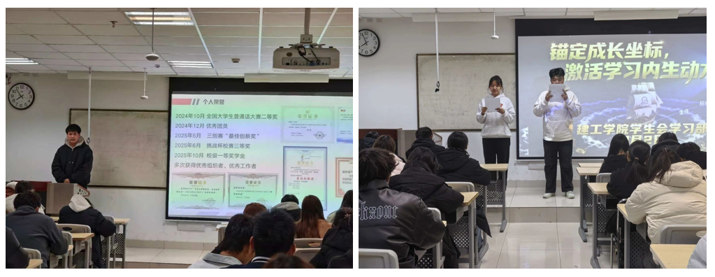 为充分发挥评奖评优的榜样示范引领作用,激励广大学生见贤思齐、勇担时代使命,2025年11月30日至12月4日,城乡规划与建筑工程学院团总支·学生会成功举办了“学优力行,筑梦建工”主题优秀学生先进事迹宣讲活动。本次活动由学院学生会学习部具体统筹落实,旨在通过搭建交流平台,让优秀学子的成长故事与宝贵经验辐射全院,营造崇尚先进、学习先进、争当先进的浓厚氛围。