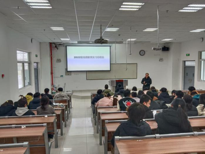 2026年1月14日下午3点,在8号楼多媒体20召开2022级地理教育实习总结大会。会议由实习带队教师丁少男主持,实习带队教师王高建、杨维鸽和2022级全体学生参加。